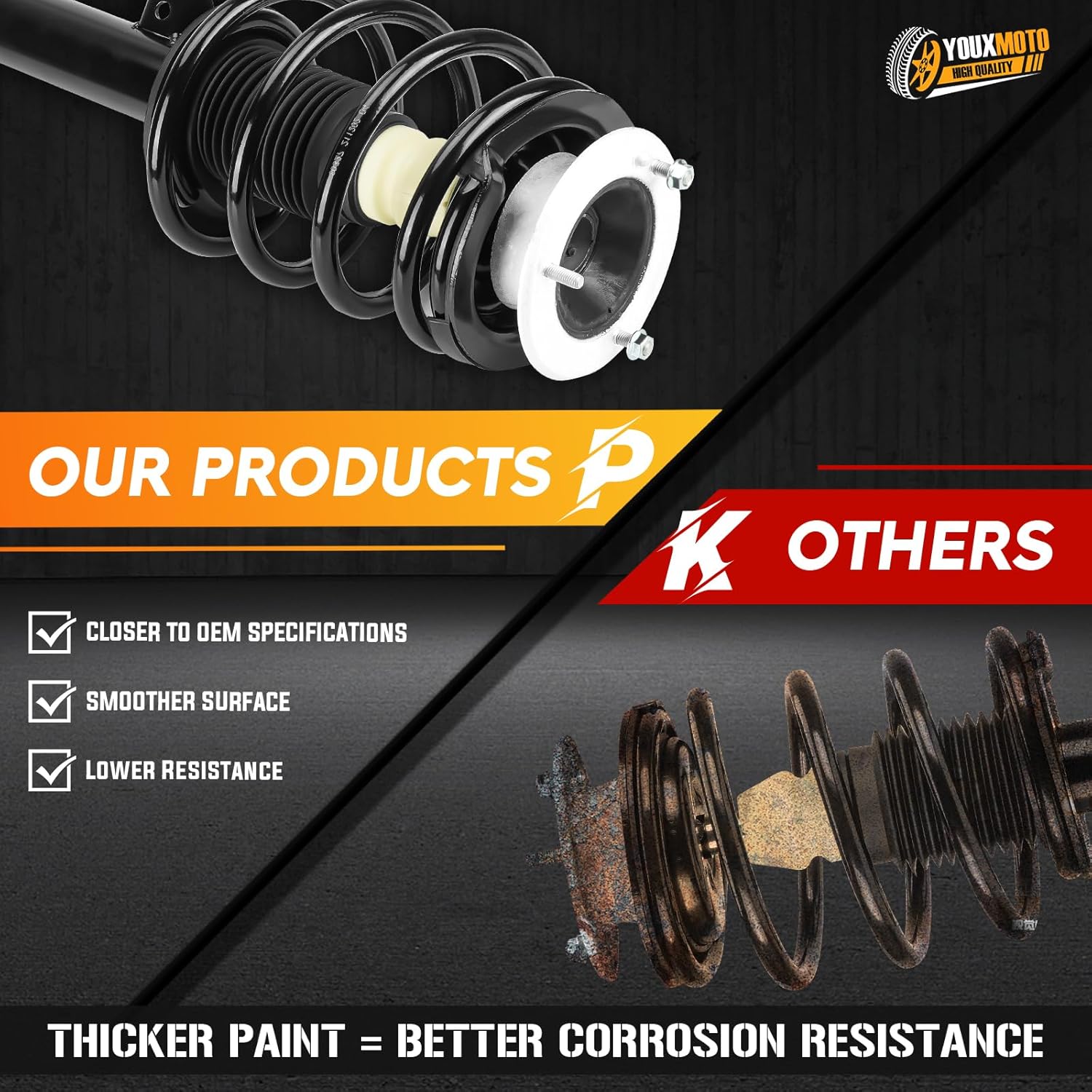 Fitment:Please check your car information before purchasing.✔Compatible with BMW 323i 2000323Ci 2000325i (Sedan Only) 2001-2005325Ci 2001-2005328i 2000328Ci 2000330i 2001-2005330Ci 2001-2005Specification:Location: Front Left and RightPackage Included: 1 × Front Passenger Side Strut w/ Coil Spring Assembly-1715811 × Front Driver Side Strut w/ Coil Spring Assembly-1715822 × Front Sway Bar Links-K90515SOME TIPS BEFORE INSTALLATION:√ In order to ensure the consistency of the shock absorber, it is best to choose the shock absorber to be replaced in pairs.√ The bearing on the top of the shock absorber should be lubricated (grease), and the waterproof dust cover must be put in place to ensure that it is not damaged.√ It is particularly difficult to remove the end nut of the telescopic tappet of the shock absorber (the spring must be fastened with an iron wire), and it is easier to install.√ When installing the ball head (suspender) of the balance bar, press down with an iron rod to install it smoothly.√ Highly recommended for professional installationHighly recommended for professional installation.