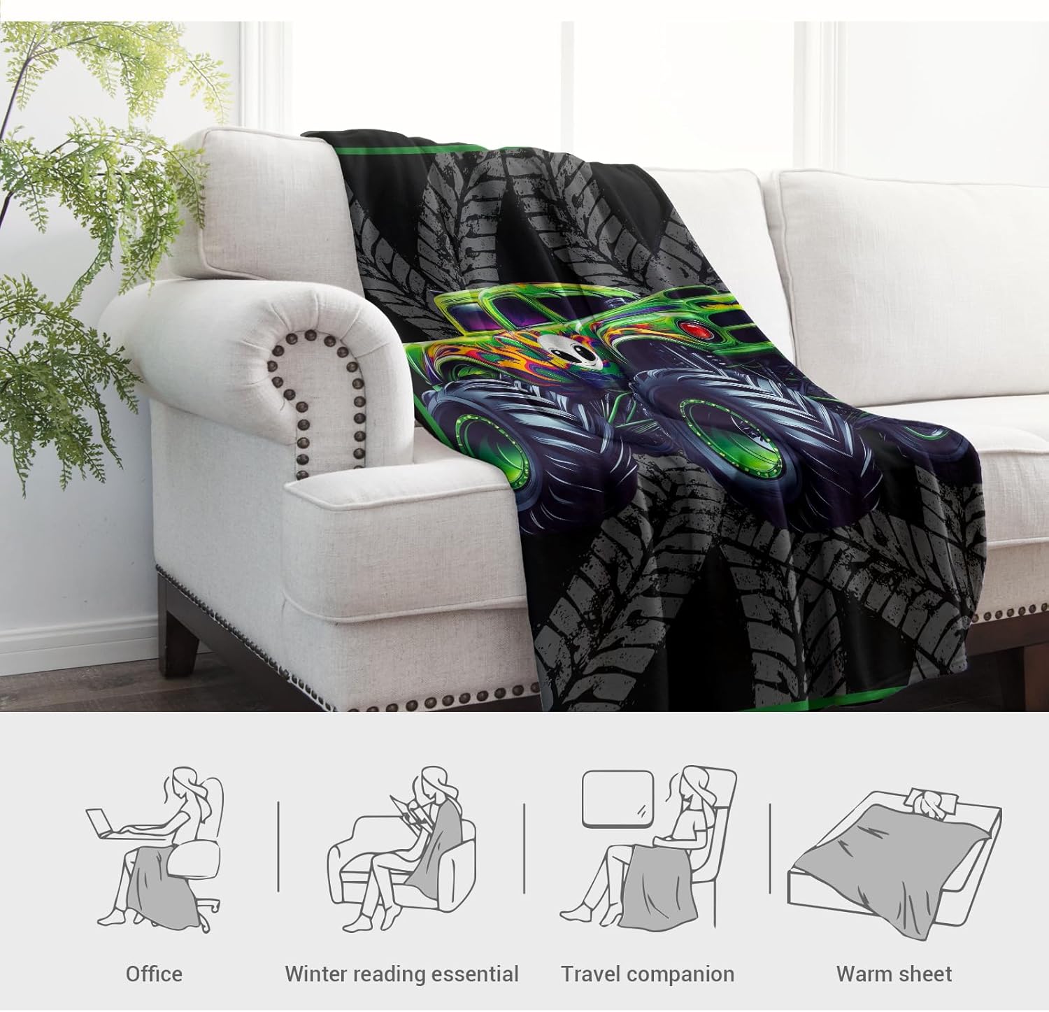Jekeno Truck Blanket Gifts for Boys Son Men Dad Husband Birthday Christmas Party Decorations Ghost Trucks Themed Print Presents Decor Home Couch Sofa Bed Soft Cozy Plush Kids Adults Throw 50"x60"