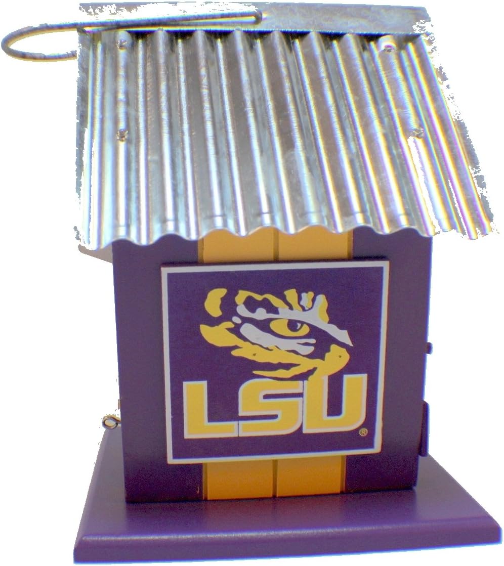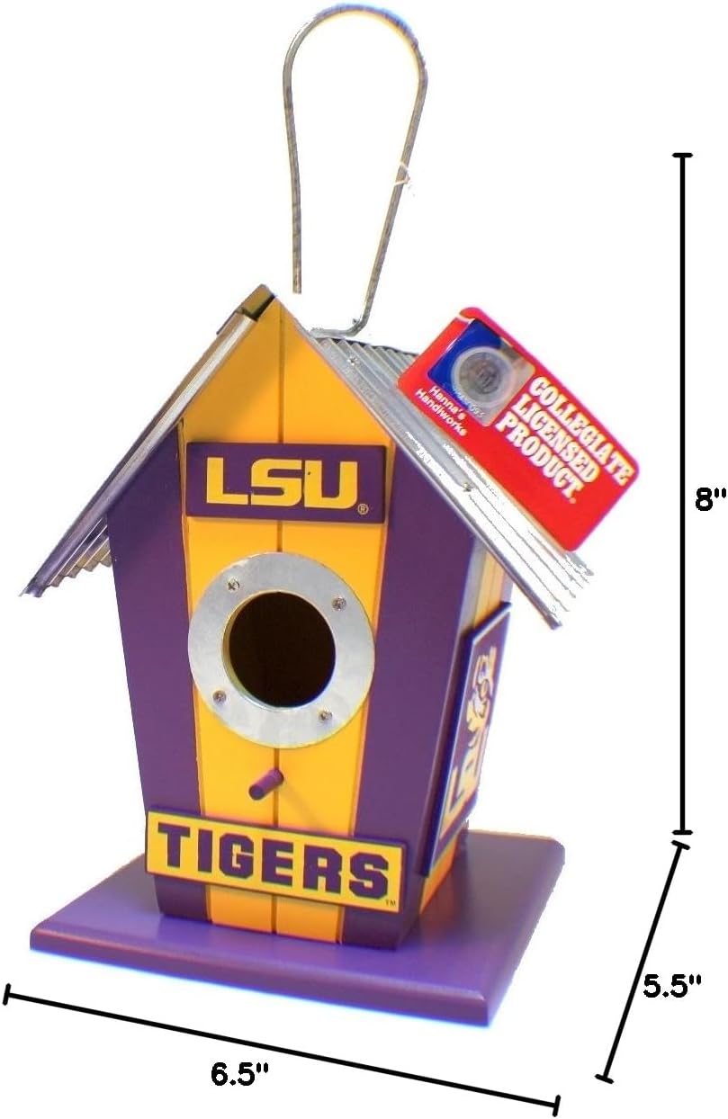 Licensed Wood Bird House with Metal Roof, Back Door, Cleanout and Metal Accents, Featuring Collegiate Colors and Logos.