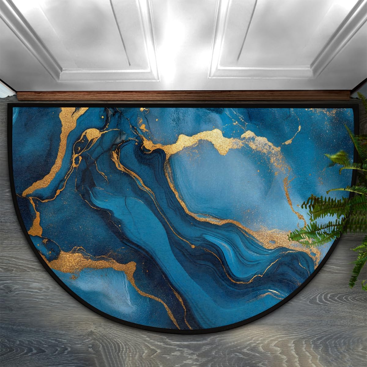 Half Round Door Mat Indoor Entrance Washable Half Circle Area Rugs Non Slip Half Moon Rug Semi Circle Bathroom Rugs Floor Carpet for Kithen Bedroom Fireplace DecorPRODUCT SPECIFICATIONSSize: 36x24in / 91.4x61cmMaterial: Front side --100% microfiber polyesterBackside--non-skid dot plasticShape: Half Round/Half CirclePackage:1 x Half Round Area RugStyle:Half Area Rug/ Half Round Rug /Half Circle Rug/Half Round MatsPRODUCT FEATURES:1:Keep Floor Clean & Dry, It absorbs water quickly and dries quickly, protecting the floor from moisture, dirt and scratches.2:Non-Skid Backing, Comes with build in anti-slip doormat pad mat with non-skid dot plastic back for maximum grip to prevent you to slip.3:Easy to Clean: The door mats are easy to clean, you can just use vacuum to clean it on daily. If it has been used for a long time, customer can use wash machine to clean the mats.4:High quality durable materials will not break down or compress over time. It is lightweight and could be continually using for long time.5:Perfect decoration A simple way to make the bathroom, kitchen, living room, bedroom, hallway or room bright, colorful and warm.6:Multi-Purpose Usage, Our round carpet is an ideal choice for home decoration, suitable for bathroom, kitchen, bedroom, living room, study room, play room, kid's room, baby room, office, home decor etc.7:Perfect Gift, It can be great gift choice for Mother's Day, Father's Day, Halloween, Christmas, Thanksgiving, Birthday, New Year, Home Decor and more.