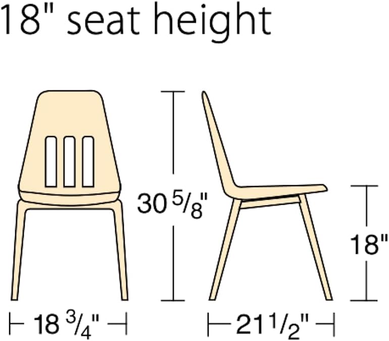 With over 60 million sold, the Virco 9000 Series is the best-selling school chair in America. Is a comfortable and affordable choice for any learning environment. The Virco 9018 is renowned for its unique 3-slot back design and its steel back support making it one of the toughest most durable chairs available. Students will enjoy the breathability of soft plastic shell seats and the durability of a tubular steel frame. Standard nylon-base glides allow for easy moving across all floors, and the chairs stack efficiently to save space. Specifications Overall Dimensions: 22.5" Length x 18.62" Width x 30.62" HighSeat Height: 18" Frame Construction:1" heavy-gauge tubular steel and a unique 3/4" tubular steel back restWeight: 12 poundsNo Assembly RequiredUnits per Carton: 4