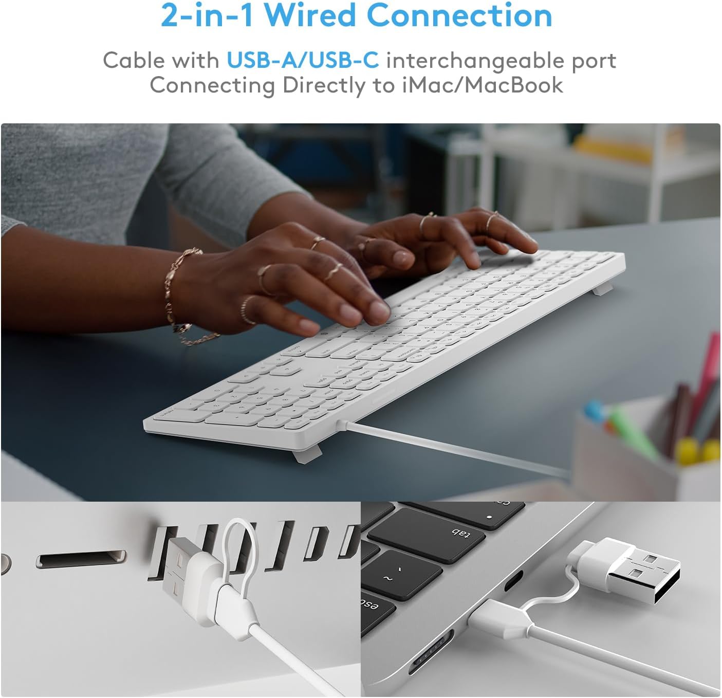 • 【USB-A / USB-C Cable Included】Connect directly to any Mac—from older USB-A iMacs to the latest USB-C MacBook Pro models. A simple alternative to an Apple wired keyboard and a practical keyboard for MacBook Pro users.